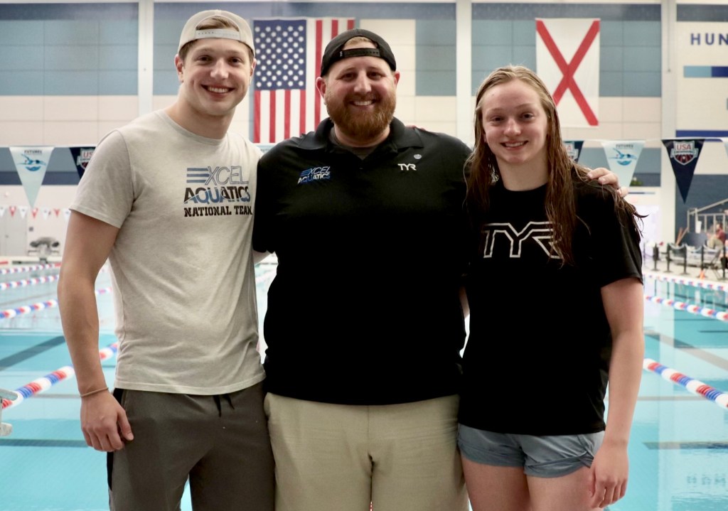 The fall and winter brought more challenges. The kids began swimming in a different pool and tried to join some others, but it was not consistent with their training plan, so they had to pivot and train on their own again. That season, they did not see time drops in their “best” events but saw improvement in off-events that could still be celebrated. Distance events were improving which showed they were building endurance. Some meets featured sprint events they had not swum since their 10 and under days, like the 100 IM and non-free 50’s. Best times and team records were something to get excited about. They were able to participate in relays again and even swam a mixed relay together. They were able to travel and swim in new pools. Victories were now less focused on time drops in their best events, but now on gratitude for little things that had become big things. Things like enjoying sitting by your sibling because they were now your best friend. Making new friends, even if you only saw them at meets. Seeing your coach in person and getting immediate feedback on your races or at a special practice. Cheering on someone you barely know and being cheered on by someone who barely knows you. Hot Heats. National Team Gear. Media Day. High fives. Team championships. Sharing snacks. Learning how to persevere because you know how badly you want it.
